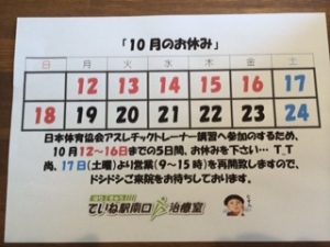 「10月臨時休業」のお知らせ・・・