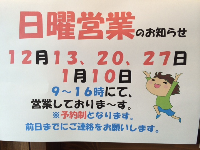 日曜営業(12月、1月)のお知らせ!!