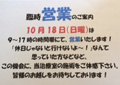 10月18日(日曜)9~17時の時間帯で営業致します。