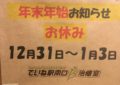 年末年始のご案内!